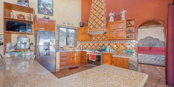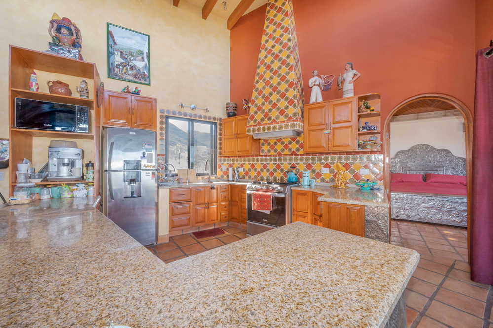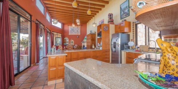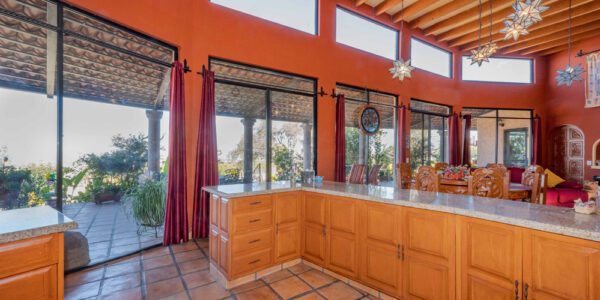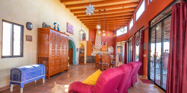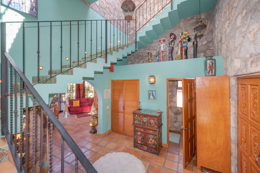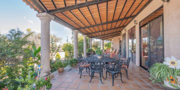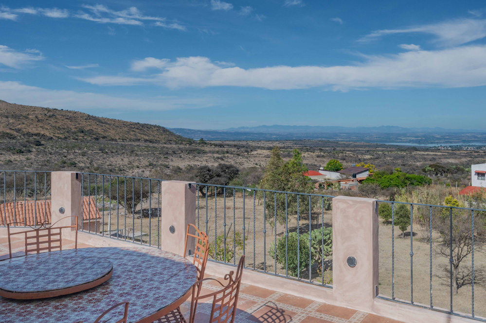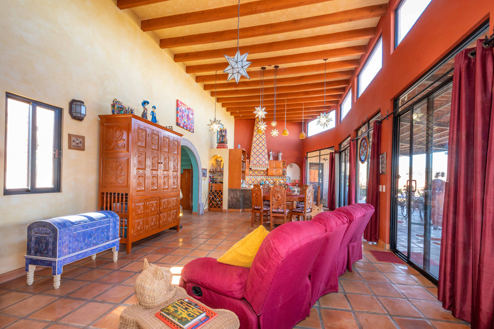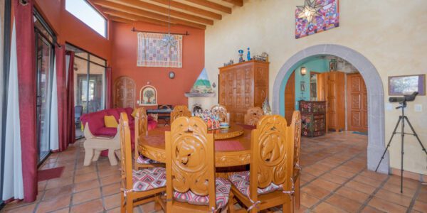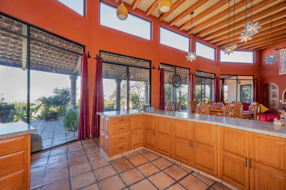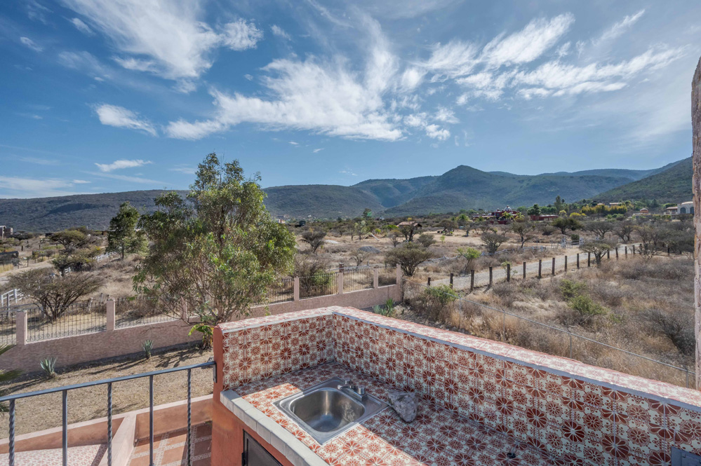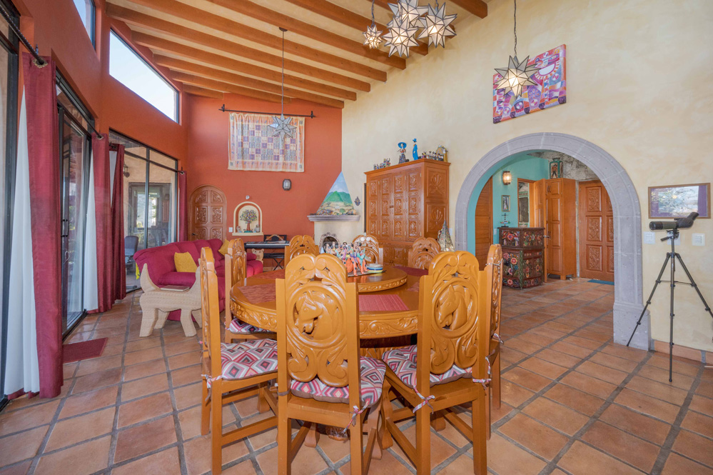 · Living Spaces: All on the first floor with an open concept living and dining areas with a vaulted ceiling bathed in natural light from the wall of windows that opens to a huge wrap around covered patio. The only space on the second floor is a rooftop terrace with a summer kitchen and outstanding forever views of the Picacho Mountains, the Presa Allende and San Miguel de Allende.