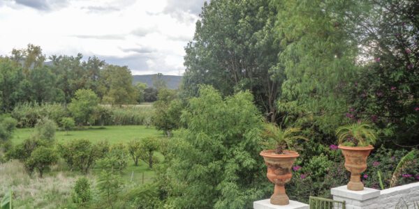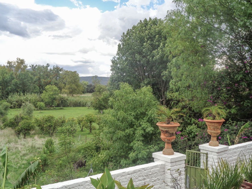 If you would like to come home and feel like you are in an elegant spa retreat, then you must come to see this property. As you walk through the lush gardens and big trees surrounding the home, casita, and separate office, you come upon a large patio with forever views of the countryside and mountains in the distance. Alongside the patio is yet another lower garden. Entering the two-story home, you see a large open floor plan that is very light and bright with a first floor bedroom with an ensuite full bathroom. Heading upstairs you will find 2 bedrooms that share a beautiful bathroom with a jacuzzi tub and all have amazing views that reach down to the Rio Laja and beyond. While so much has been done to improve the property over the years, there is still a lot of wide-open land that can be developed for a variety of uses. This is a very special country property that will leave you feeling so pampered you may never want to leave…… but if you must, local shops can handle most of your daily needs and San Miguel de Allende is an easy 20 minute drive away.