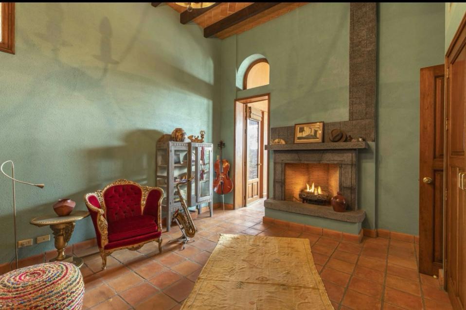 La propiedad cuenta con 5 chimeneas en total que pueden utilizarse con gas así como leña, destacando la chimenea de la sala por su grandeza y gran campana de acero martillado que permite calentar todo el piso, además tiene un asador para disfrutar de sus carnes asadas.
