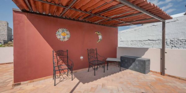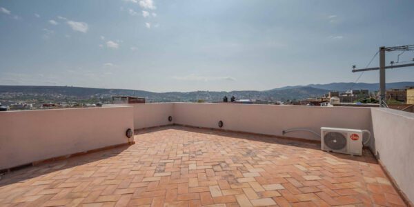 Excelente opción para vivir y rentar alguna de las unidades. Cada una con dos recamaras, un baño, plan abierto de cocina hacia área social, lavandería y compartida. En el nivel bajo un patio que funciona como cochera, doble entrada a la casa, en planta alta hay dos minisplits de aire acondicionado y en el roof-top compartido, una vista agradable a la ciudad las montañas. Lo más importante es la promisoria plusvalía dada su ubicación a dos minutos de Club de Golf Ventanas, salida a Dolores etc. y su cercanía al bello Centro de San Miguel… ¿Del precio?… ¡EXCELENTE!