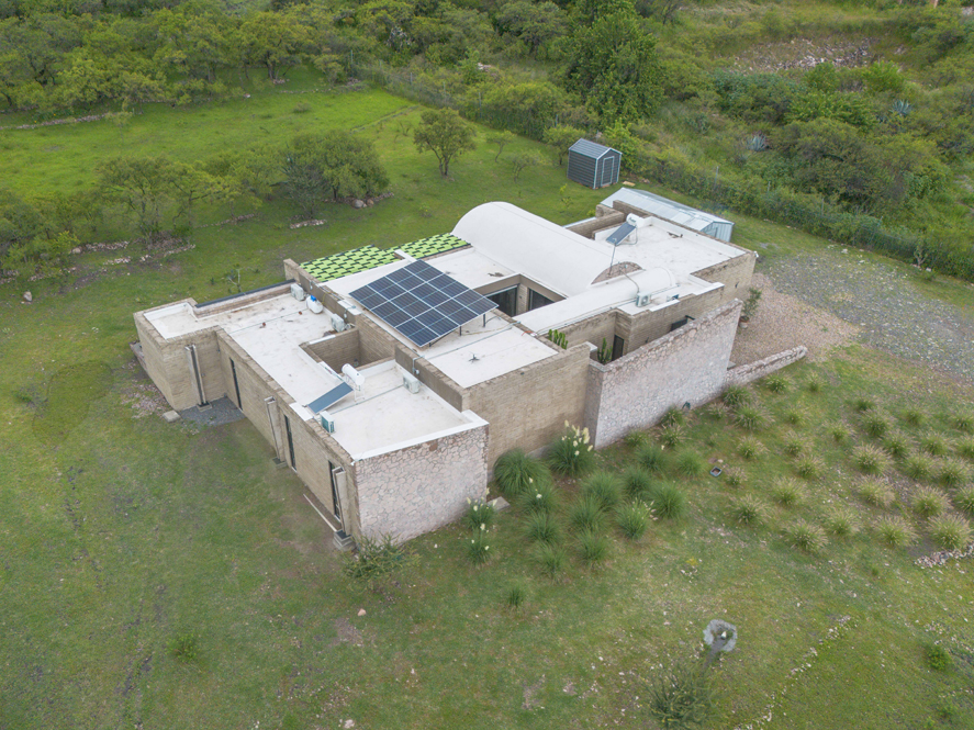 The entire roof captures rainwater, which drains through five funnels into a 100,000-liter cistern beneath the garage. The water passes through a whole-house filtration and purification system, while a Microplant Conamex MC2M biofiltro Septic System filters wastewater before returning it safely to the environment.