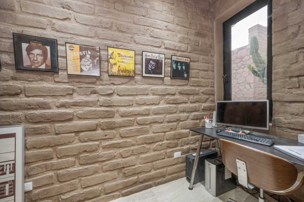 En toda la casa, gruesos muros de adobe y piedra, y ventanas de doble panel de vidrio templado reflectante, regulan la temperatura gracias a seis minisplit Mirage Inverter (cinco de 24 000 BTU y uno de 18 000 BTU). Doce paneles solares con baterías e inversores alimentan un sistema de 280 amperios-hora y 48 voltios. El sistema de tres zonas Bosch funciona con propano.