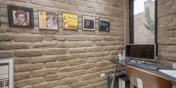 En toda la casa, gruesos muros de adobe y piedra, y ventanas de doble panel de vidrio templado reflectante, regulan la temperatura gracias a seis minisplit Mirage Inverter (cinco de 24 000 BTU y uno de 18 000 BTU). Doce paneles solares con baterías e inversores alimentan un sistema de 280 amperios-hora y 48 voltios. El sistema de tres zonas Bosch funciona con propano.