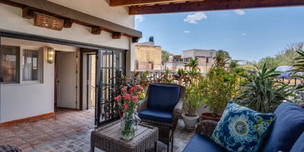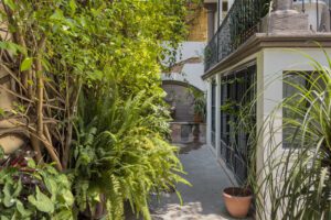 This property offers incredible versatility, whether envisioned as a luxury home, a boutique hotel, or a multi-unit rental property. It boasts multiple plant-filled patios and a charming covered rooftop terrace with breathtaking views of the Parroquia and surrounding churches. The serene ambiance is enhanced by the soothing sounds of two elegant fountains, creating a peaceful retreat.