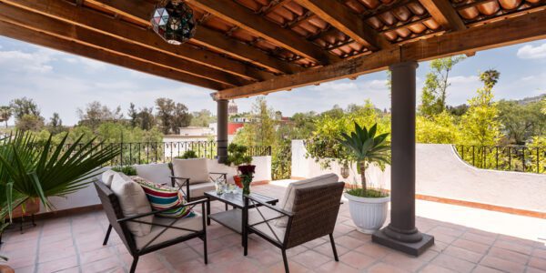 Esta propiedad ofrece una versatilidad increíble, ya sea que se imagine como una residencia de lujo, un hotel boutique o una propiedad de renta con múltiples unidades. Cuenta con varios patios llenos de plantas y una encantadora terraza cubierta en la azotea con impresionantes vistas a la Parroquia y las iglesias circundantes. La atmósfera serena se realza con el sonido relajante de dos elegantes fuentes, creando un refugio de paz